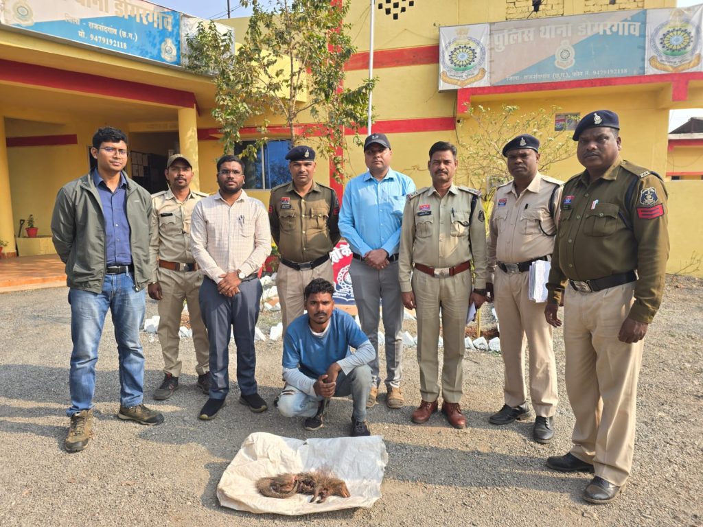 वन विभाग डोंगरगांव द्वारा आरोपी के विरूद्ध पी.ओ.आर. प्रकरण क्रमांक 17845/08 दिनांक 23.01.2026 धारा वन्य प्राणी संरक्षण अधिनियम 1972 की धारा 9, 39, 44, 49, 498, 51, 57 कायम कर आरोपी गोकुल उईके पिता मनेजर उइके, उम्र 22 साल, निवासी ग्राम आरी कोनारी, थाना